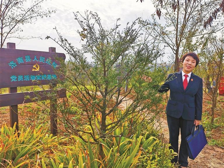 洛南縣人民法院在“秦嶺紅豆杉司法保護(hù)基地”建起黨員活動(dòng)實(shí)踐基地,定期組織黨員參觀實(shí)踐,增強(qiáng)環(huán)境保護(hù)意識(shí)。圖為11月28日,周夢琳介紹基地情況。 本報(bào)記者 鄭斐攝